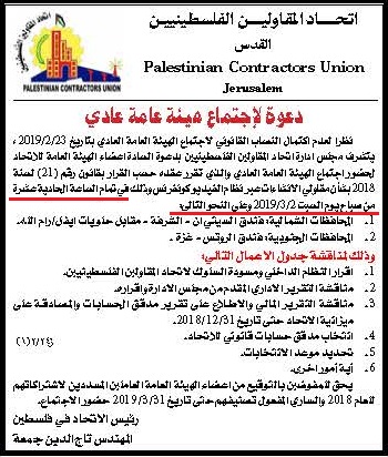 دعوة لحضور اجتماع الهيئة العامة 2019