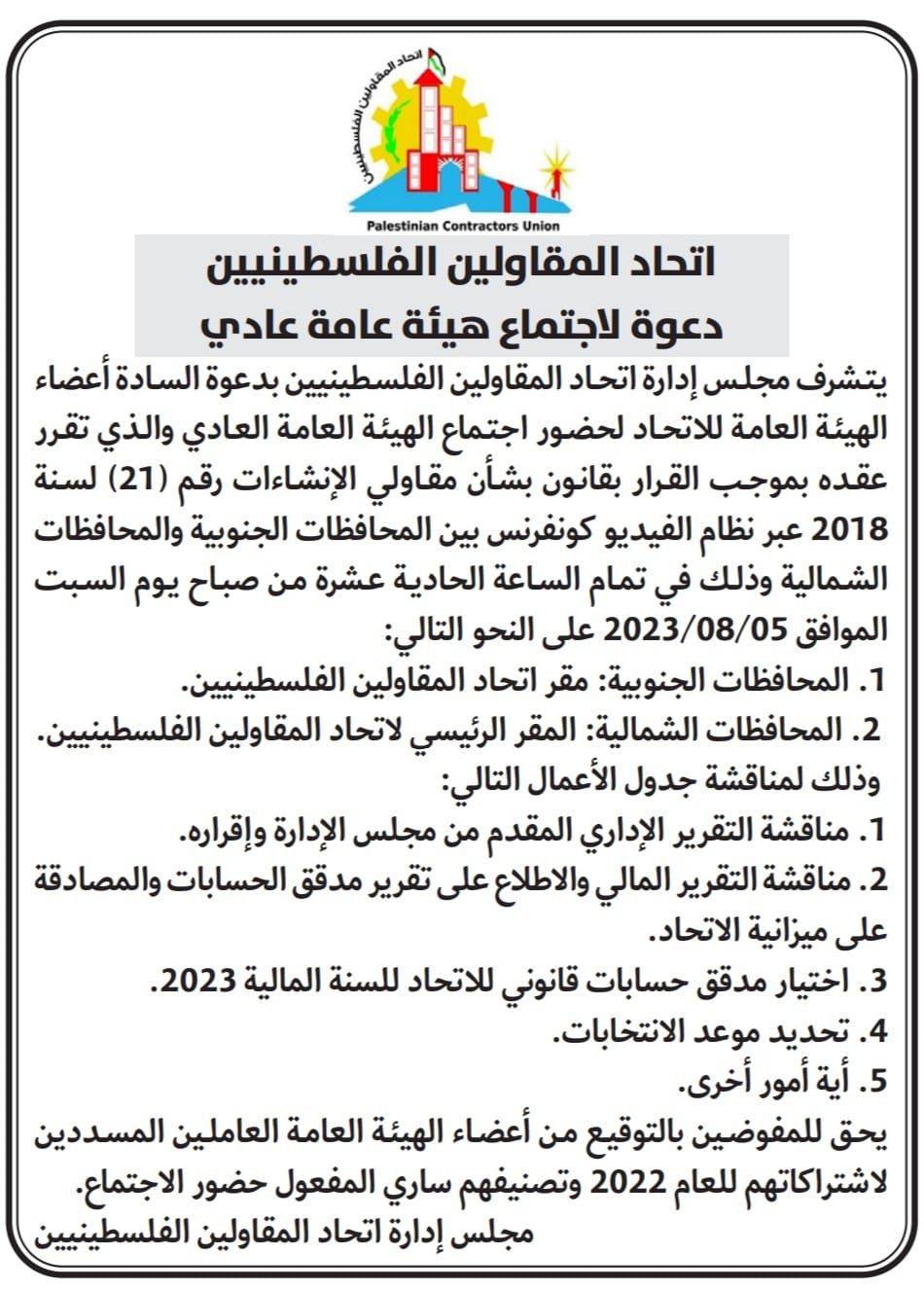 دعوة لحضور اجتماع الهيئة العامة