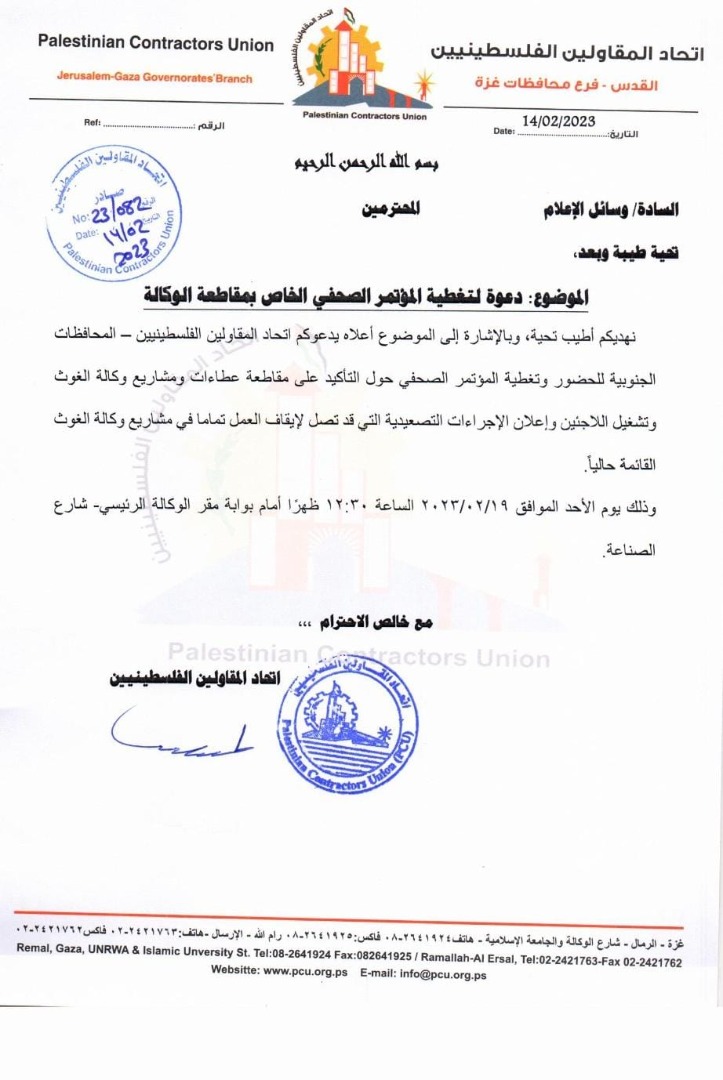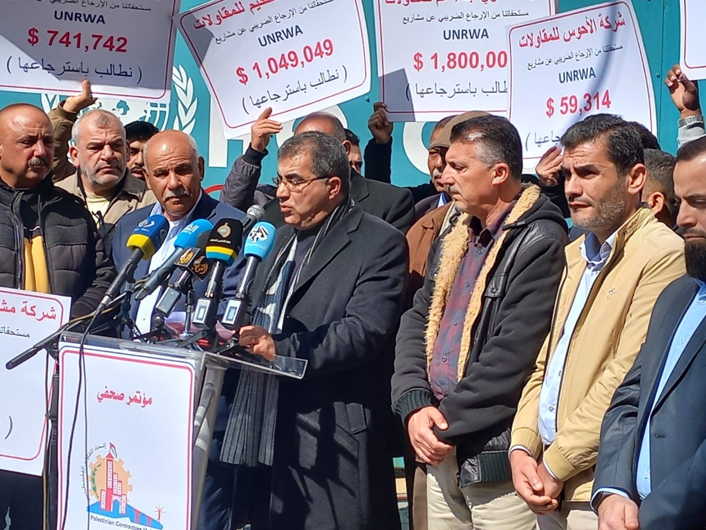 المؤتمر الصحفي أمام مقر الوكالة للمطالبة بالارجاعات الضريبية على مشاريع الوكالة