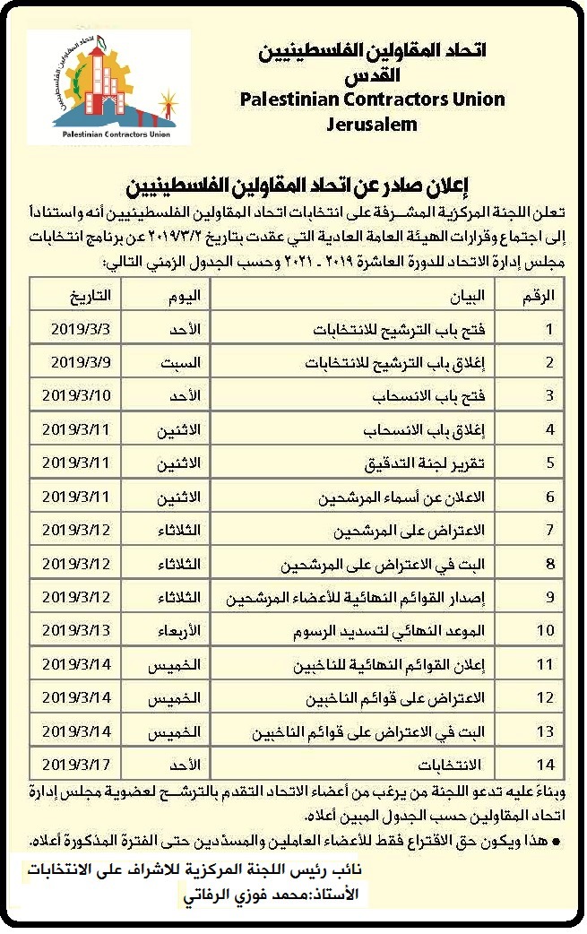 إنتخاب أسامة جبر كحيل نقيبا للمقاولين بمحافظات غزة